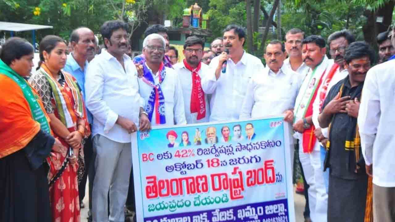 బీసీలకు 42 శాతం రిజర్వేషన్లను అమలు చేయాలని డిమాండ్ చేస్తూ అక్టోబర్ 18న బీసీ సంఘాల ఐక్య కార్యాచరణ సమితి (జేఏసీ) ఇచ్చిన తెలంగాణ రాష్ట్ర బంద్ ను జయప్రదం చేయాలని అఖిలపక్ష నాయకులు పిలుపునిచ్చారు.
