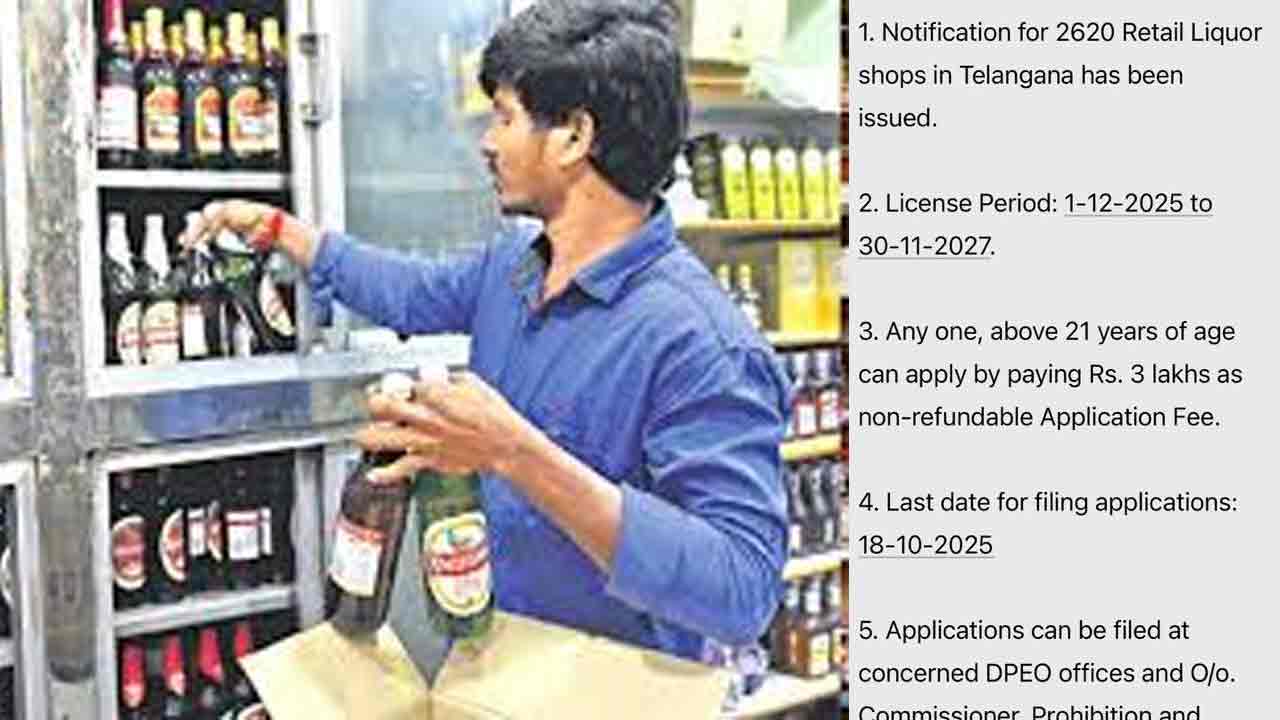 Liquor Shops రాష్ట్రంలో 2,620 మద్యం దుకాణాల కోసం కాంగ్రెస్ ప్రభుత్వ దరఖాస్తులు స్వీకరిస్తున్న సంగతి తెలిసిందే. దరఖాస్తుల స్వీకరణకు శనివారమే చివరి రోజు. నిన్నటి వరకు కేవలం 25 వేల మద్యం దరఖాస్త