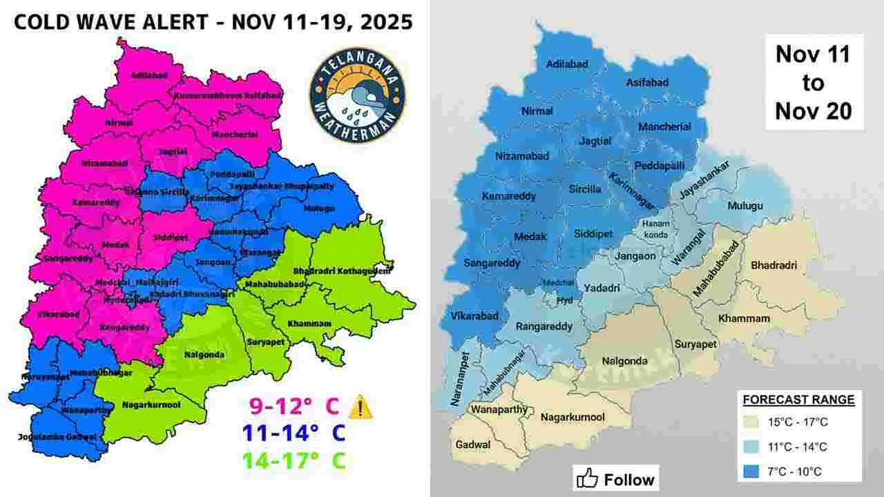 చలికాలం తన ప్రతాపాన్ని చూపడం మొదలుపెట్టింది. రెండు రోజులుగా తెలంగాణ వ్యాప్తంగా ఉష్ణోగ్రతల్లో భారీ మార్పులు వస్తున్నాయి. ఈ రాత్రి ఉష్ణోగ్రతలు పది డిగ్రీల సెల్సియస్ కు పడిపోనున్నాయని..