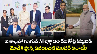 విశాఖలో డేటా సెంటర్ ఏర్పాటు చేసేందుకు కూటమి ప్రభుత్వం గూగుల్ తో ఒప్పందం చేసుకున్న సంగతి తెలిసిందే. ఇండియాలో మొట్టమొదటి ఏఐ హబ్ ఏర్పాటు చేసేందుకు ప్రభుత