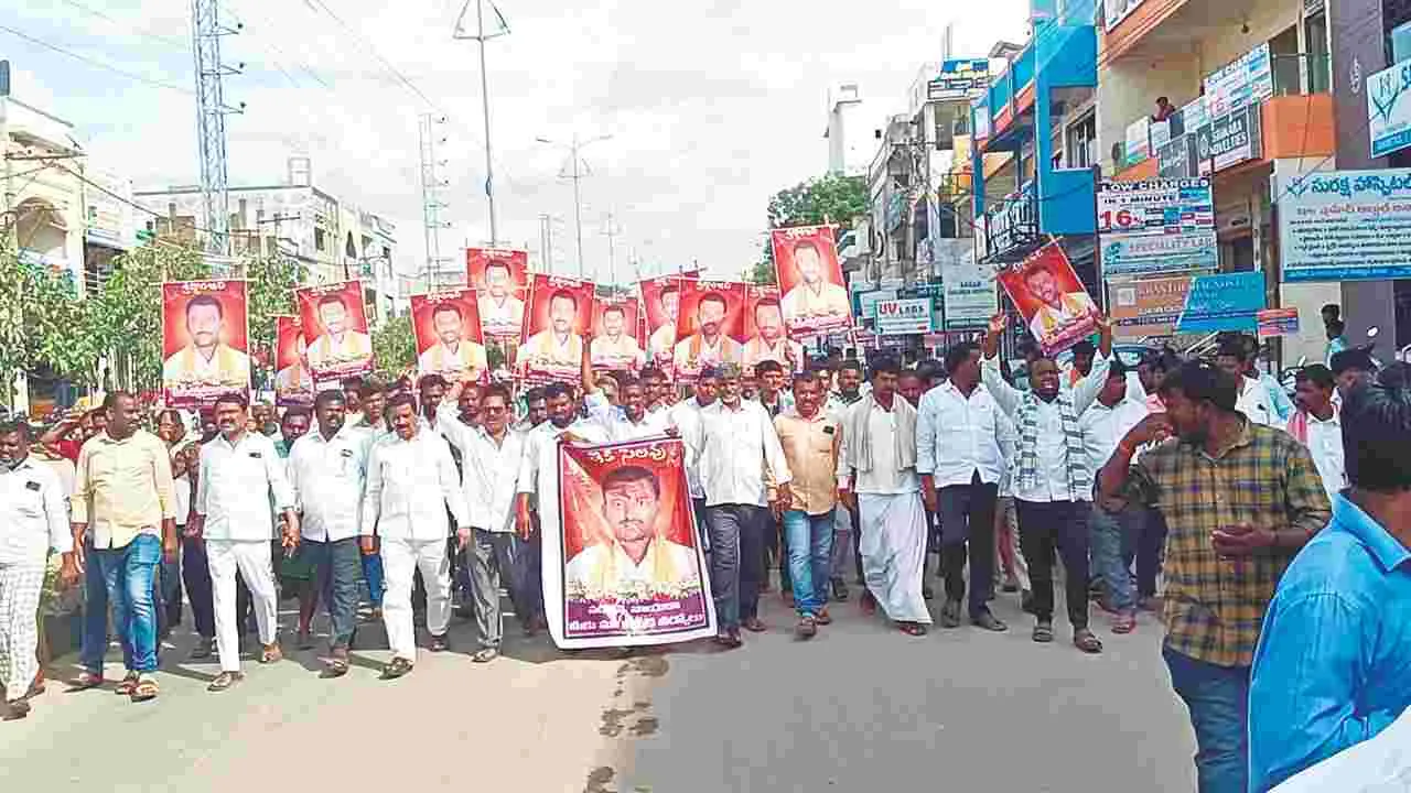 కేటీదొడ్డి మండలం నందిన్నె గ్రామ మాజీ సర్పంచు చిన్న భీమరాయుడు (40)ని శుక్రవారం ధరూర్ మం డలం జాంపల్లి వద్ద బొలెరో వాహనం ఢీకొ నగా, మృతి చెందాడు. ఆయన మృతిపై కు టుంబ సభ్యులు అనుమానం వ్యక్తం చేస్తూ ఎనిమిది మందిపై ఫిర్యాదు చేశారు. ఇది రోడ్డు ప్రమాదం కాదని, ఉద్దేశపూర్వకంగానే వెనుక నుంచి ఢీకొట్టి హత్య చేశారని ఆరోపిస్తూ శనివారం గద్వాల జిల్లా కేంద్రంలోని ప్రభుత్వ ఆసుపత్రి ముందు పెద్ద ఎత్తున ఽధర్నా నిర్వహించారు.