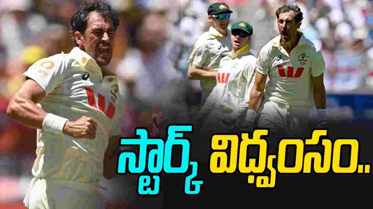 [11:55]యాషెస్ సిరీస్లో భాగంగా.. పెర్త్ వేదికగా జరుగుతున్న మొదటి టెస్ట్ మ్యాచ్లో ఆసీస్ బౌలర్లు విజృంభించారు. దీంతో ఇంగ్లాండ్ 172 పరుగులకే ఆలౌటైంది.