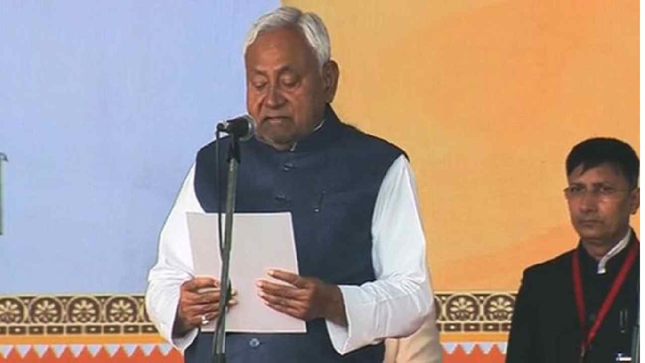 బీహార్ ముఖ్యమంత్రిగా రికార్డు స్థాయిలో 10వ సారి నితీశ్ కుమార్ ప్రమాణ స్వీకారం చేశారు. ఆయన చేత గురువారం గాంధీమైదాన్లో గవర్నర్ ఆరిఫ్ మహ్మద్ ప్రమాణ స్వీకారం చేయించారు. ఈ కార్యక్రమానికి ప్రధాని నరేంద