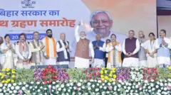 బిహార్ ముఖ్యమంత్రిగా నితీశ్ కుమార్ పదోసారి ప్రమాణ స్వీకారం చేశారు. పట్నా గాంధీ మైదానంలో గవర్నర్ ఆరిఫ్ మొహమ్మద్ ఖాన్ నితీశ్తో సీఎంగా, బీజేపీకి చెందిన సమ్రాట్ చౌదరి, విజయ్ కుమార్ సిన్హాలతో డిప్యూటీ సీఎంలుగా ప్రమాణ స్వీకారం చేయించారు...