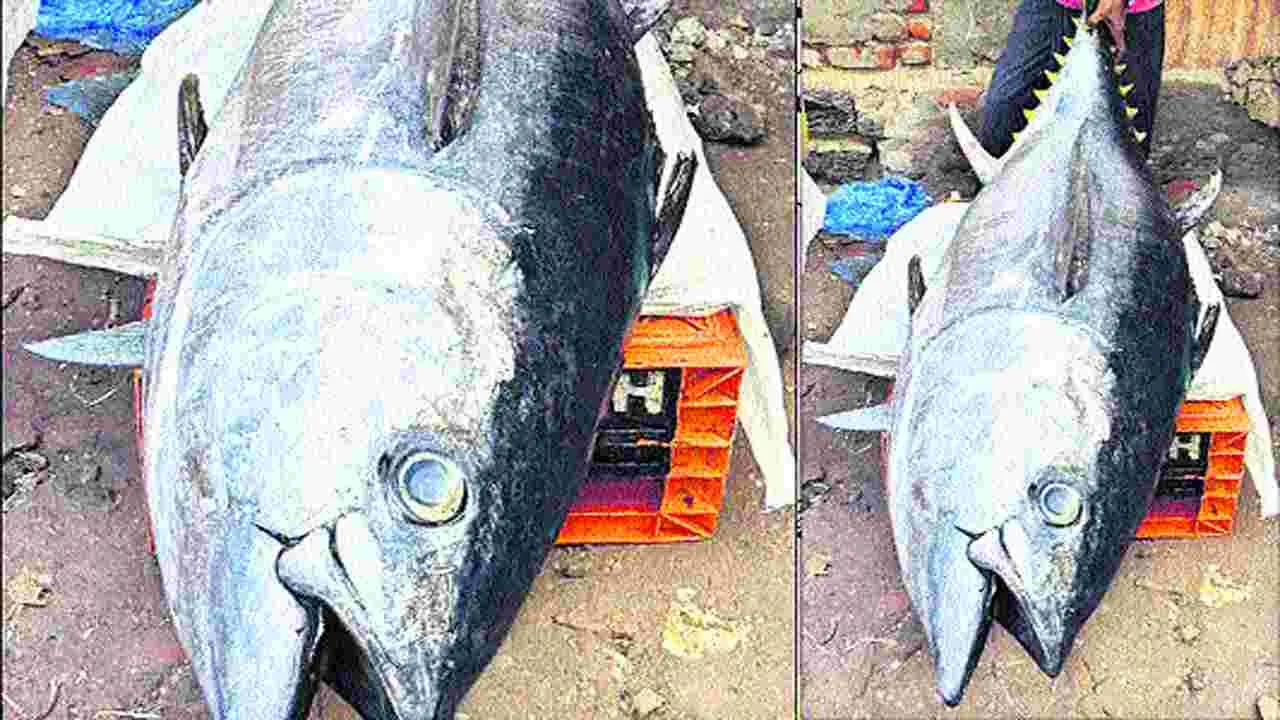 సముద్రంలో వేటకు వెళ్లిన తమిళనాడులోని రామనాథపురం జిల్లా పాంబన్కు చెందిన మత్స్యకారుల వలకు భారీ చేప చిక్కింది. జాలర్లు మన్నార్ గల్ఫ్ వద్ద వేట సాగిస్తుండగా.. వలలో పసుపు రెక్కల సూరా చేప (టూనా) చిక్కింది.