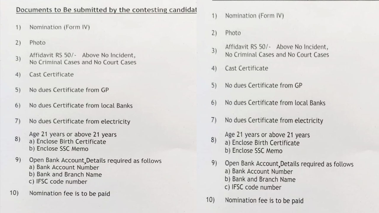 పంచాయతీ ఎన్నికల్లో విధి విధానాలను రాష్ట్ర ఎన్నికల సంఘం విడుదల చేసింది. సర్పంచ్, వార్డు స్థానానికి పోటీ చేసే అభ్యర్థి వయసు 21 ఏండ్లకు తక్కువగా ఉండరాదు.