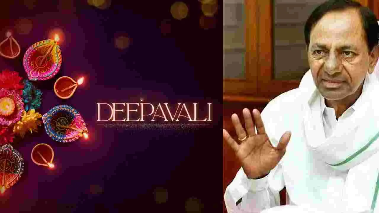 తెలంగాణ ప్రజల జీవితాల్లో దీపావళి వెలుగులు నింపాలని బీఆర్ఎస్ అధినేత కే చంద్రశేఖర్రావు ఆకాంక్షించారు. ఆదివారం ఆయన ఒక ప్రకటనలో రాష్ట్ర ప్రజలకు దీపావళి పండుగ శుభాకాంక్షలు తెలియజేశారు.